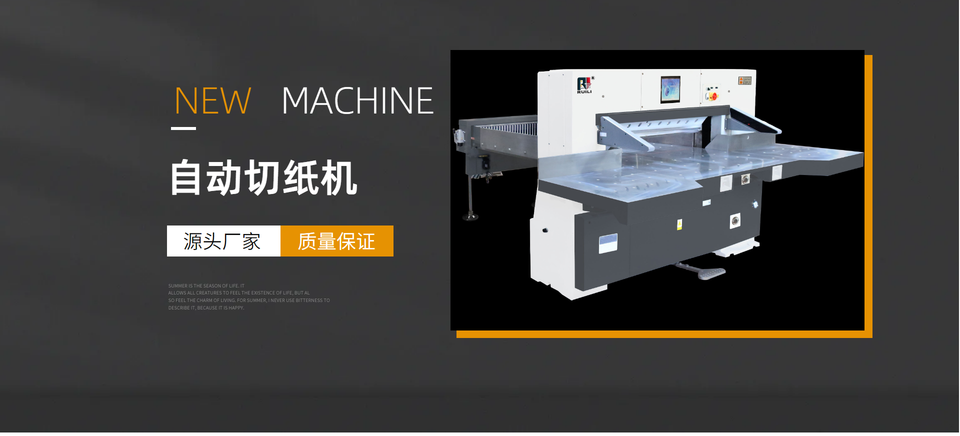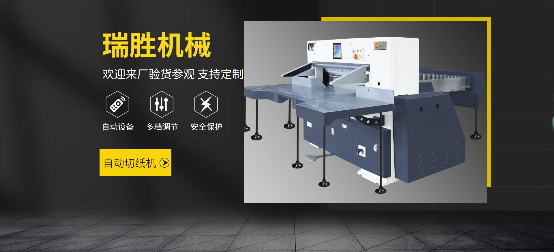 瑞安市瑞勝機械有限公司是一家專業(yè)集“生產(chǎn)、銷售、服務”于一體的印刷包裝機械企業(yè);有二十余年專業(yè)制造切紙機的經(jīng)驗,在切紙機行業(yè)中享有較高聲譽。研制出集光、機電、液為一體的高性能高品質(zhì)的切紙機系列產(chǎn)品,主要產(chǎn)品有電腦切紙機,雙液壓電腦切紙機,雙導軌數(shù)顯切紙機,快捷式壓痕機系列,覆膜機、上光機、燙金機等系列產(chǎn)品。